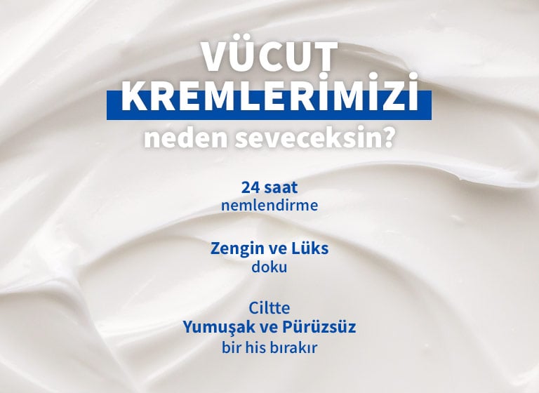 Vücudunun daha da yumuşak ve pürüzsüz olması için duş sonrası bakım rutininin dışında cildinin ihtiyaç duyduğu her an vücut kremlerimizi kullanabilirsin. Unutma günlük olarak uygulayacağın vücut kremin hayalindeki cilde ulaşman için çok önemli.
